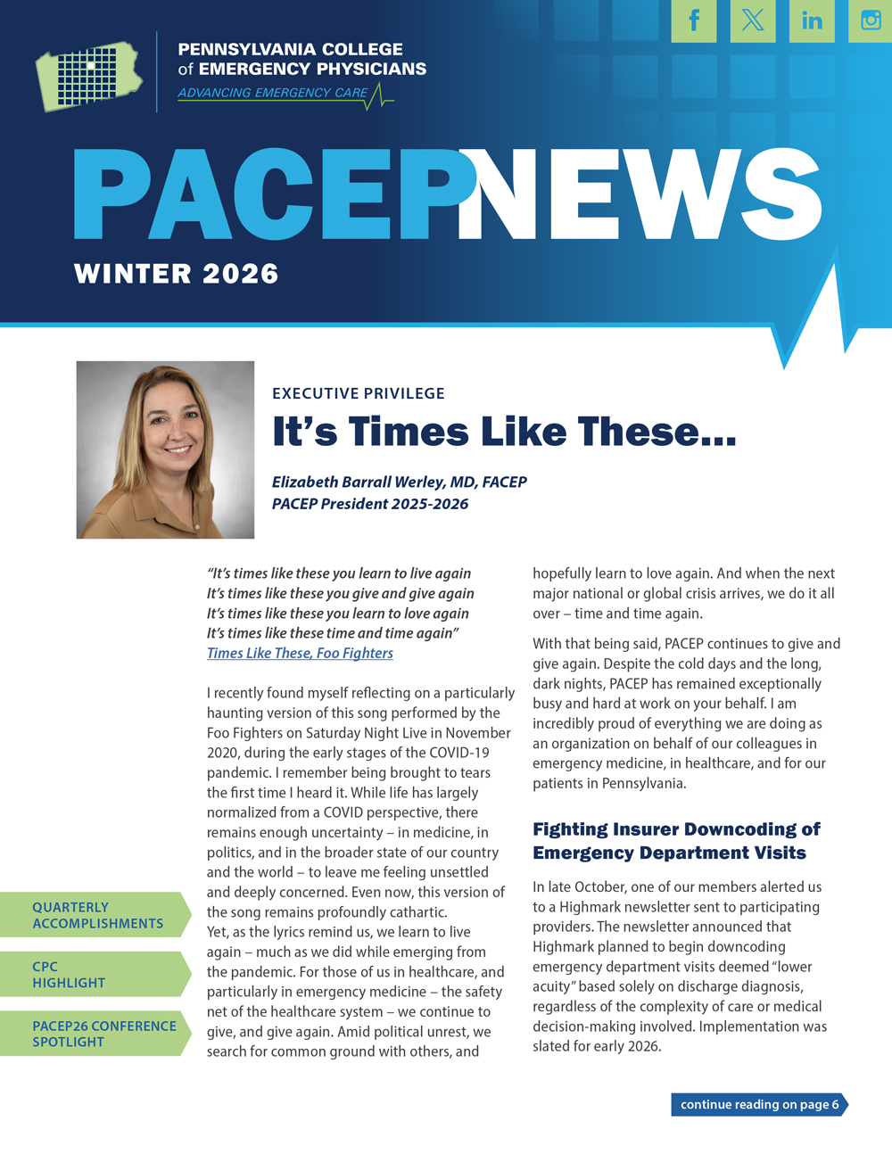 is the official publication of the Pennsylvania College of Emergency Physicians. Published four times a year and e-mailed, this publication provides news and commentary on issues of interest to more than 2,000 physician members.