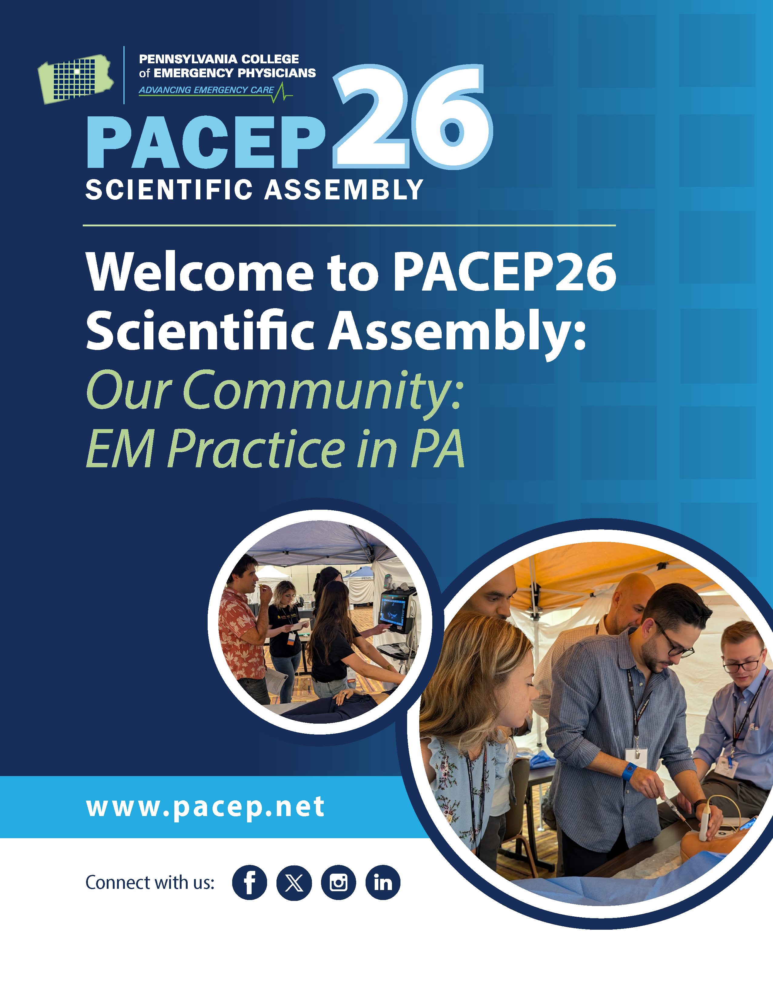 Through perennial Scientific Assembly favorites and innovative new opportunities, PACEP26 promises to equip Pennsylvania's Emergency Medicine practitioners with a wealth of tools to focus on providing optimal patient-centered and physician-centered care. We have hands-on workshops, research presentations, didactic lectures, and so much more! You'll hear the latest updates that apply to your practice from the best educators across the state, have the opportunity to participant in a hands-on ultrasound workshop, and have plenty of time to relax, catch up with friends and classmates, and build your network.
