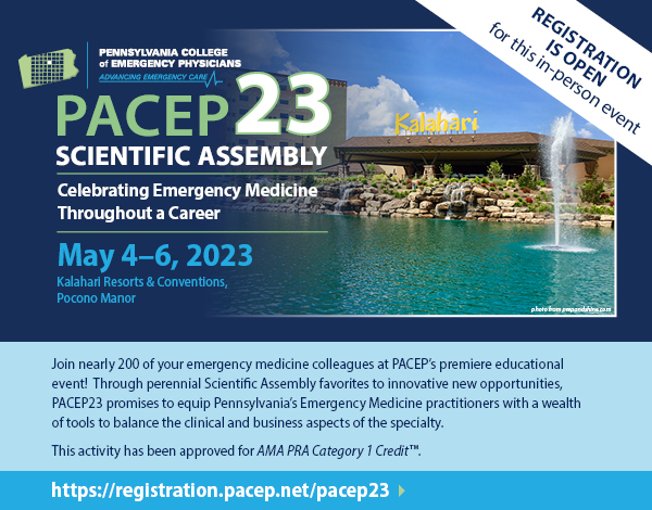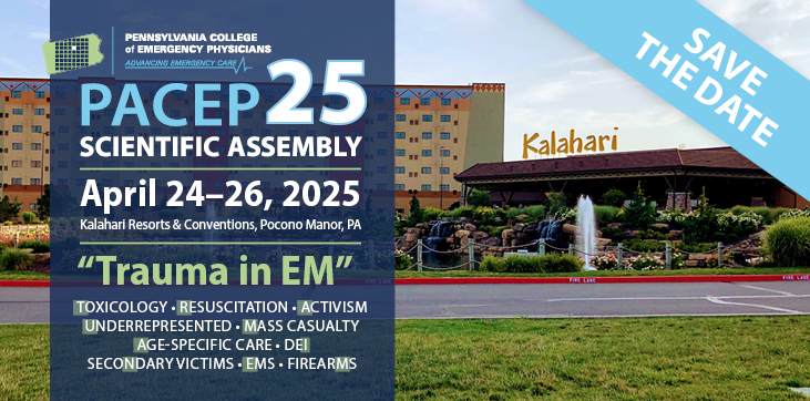 This activity has been planned and implemented in accordance with the accreditation requirements and policies of the Accreditation Council for Continued Medical Education (ACCME) through the joint providership of the American College of Emergency Medicine and the Pennsylvania College of Emergency Physicians. The American College of Emergency Physicians is accredited by the ACCME to provide continuing medical education for physicians.